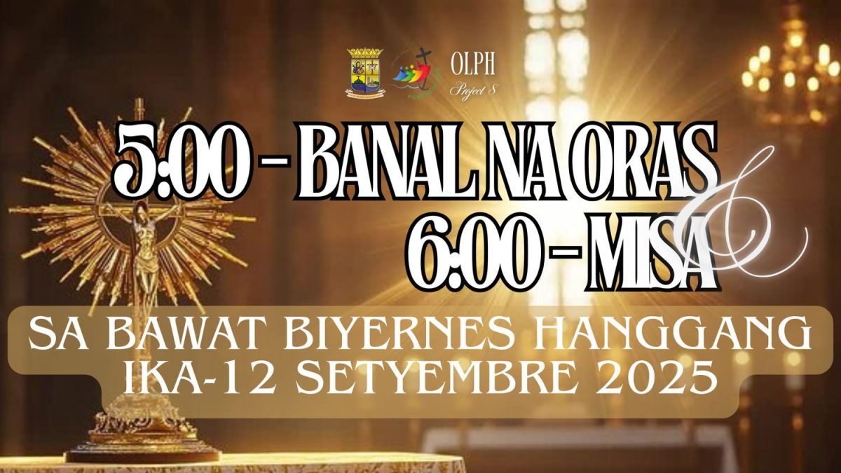 Sa bawat Biyernes hanggang sa ika-12 ng Setyembre, magkakaroon po tayo ng Holy Hour sa ganap na 5:00 ng hapon at susundan ito ng banal na misa sa 6:00 ng gabi.”