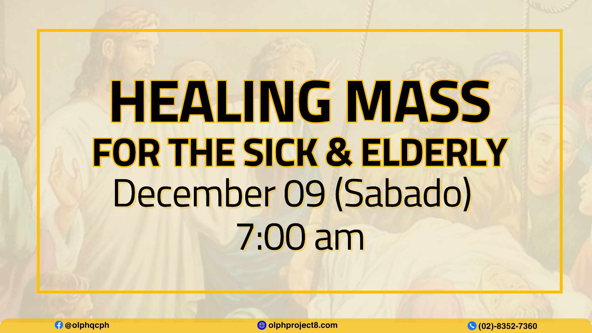 The next Healing Mass for the sick and the elderly including their caregivers and families will be on December 9, Saturday at 7:00 am.