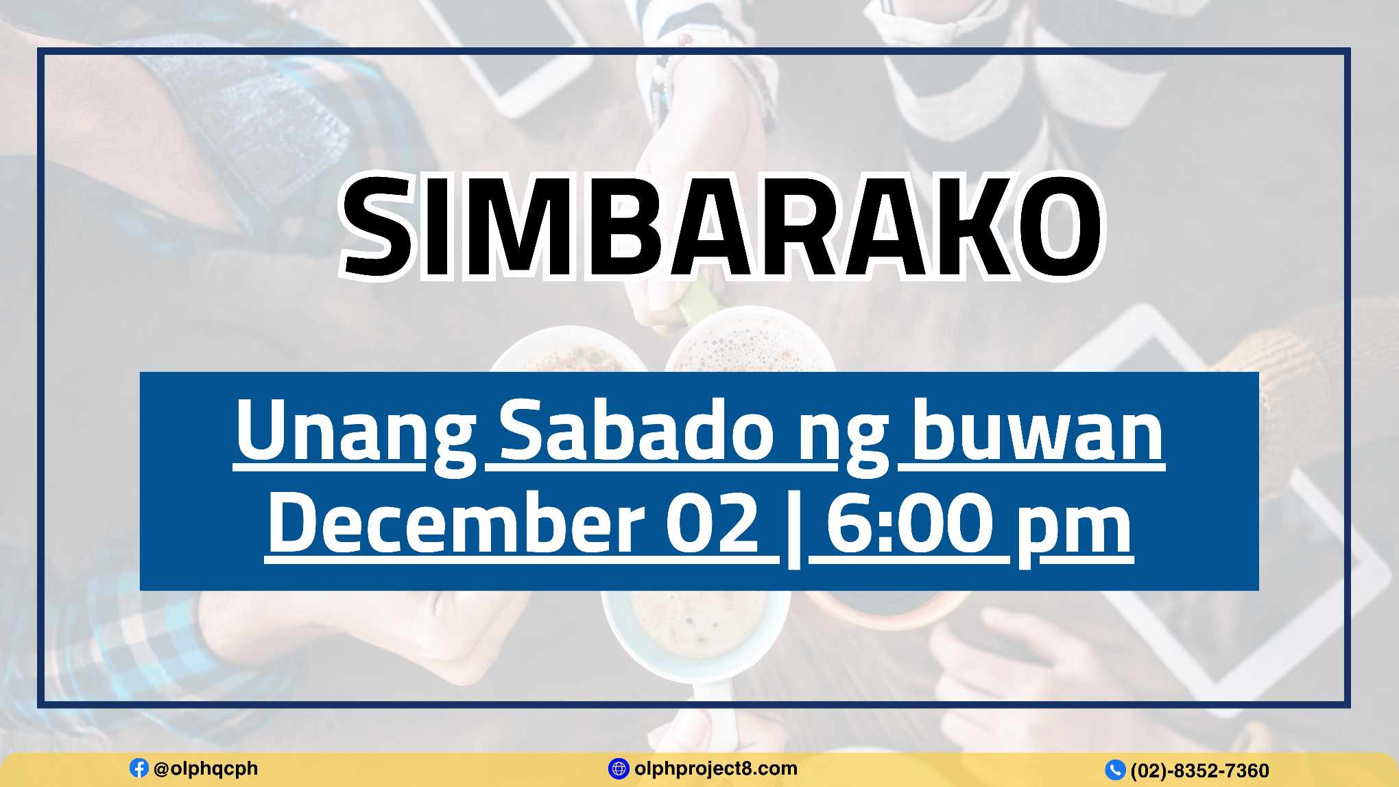 All male parishioners are invited to Simbarako, the First Saturday mass for men, on December 2 at 6:00 pm.